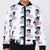 Multi Colour conversational printed bomber, has a stand collar, 2 pockets ,has a zip closure, long sleeves, straight hemline, polyester lining