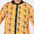Multi Colour conversational printed bomber, has a stand collar, 2 pockets ,has a zip closure, long sleeves, straight hemline, polyester lining