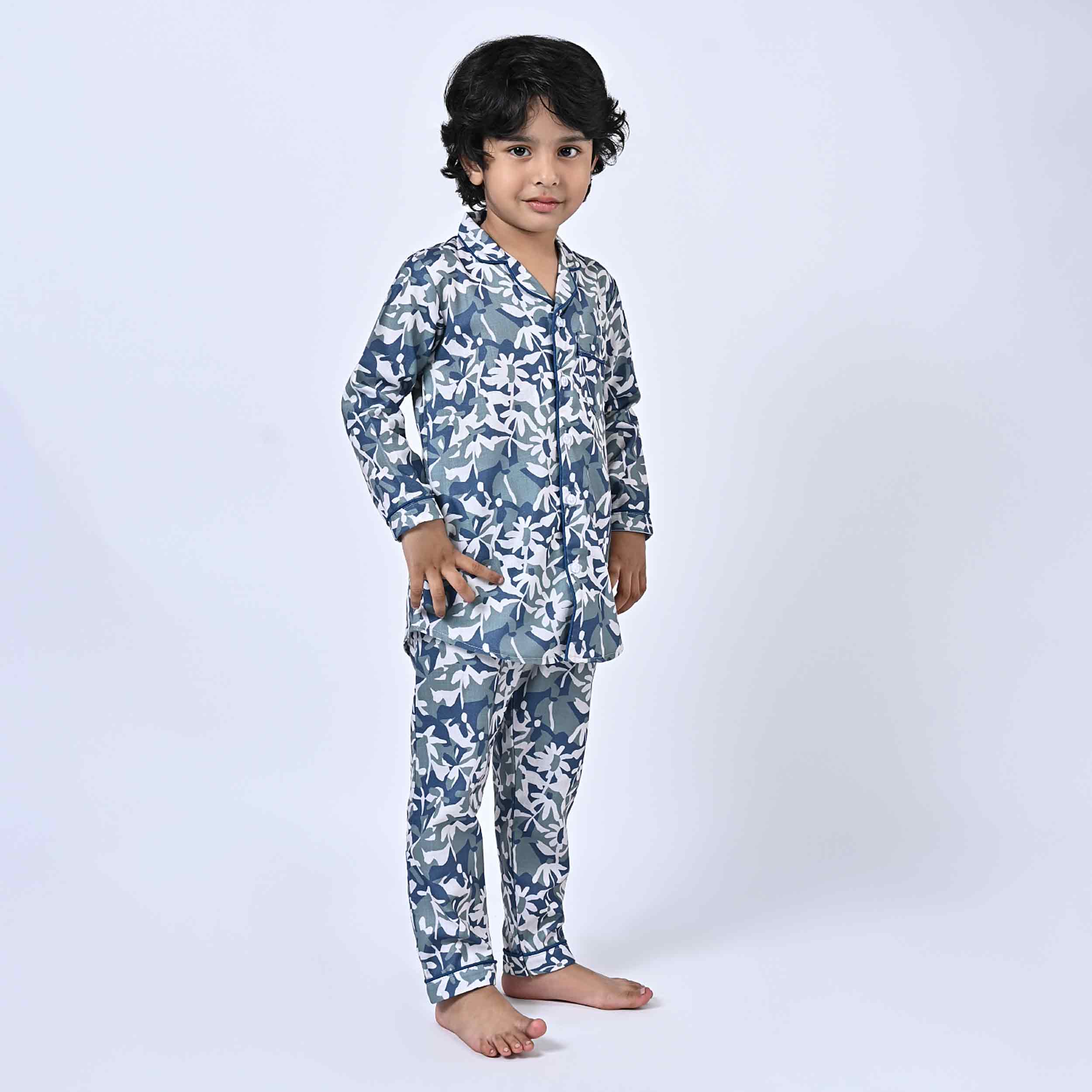 Abstract Floral Printed Kids Night Suit