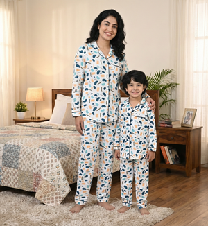 Made with premium cotton mix fabric, this nightsuit feels soft on the skin, looks smart, and stays wrinkle-free — so you always look neat even after long wear. The unique prints make every set stand out and give you that perfect “family combo” vibe.