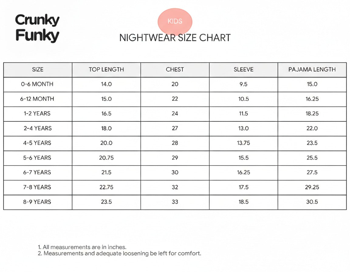 0-6 Months, 6-12 Months, 1-2 Years, 2-4 Years, 4-5 Years, 5-6 Years, 6-7 Years, 7-8 Years, 8-9 Years, S, M, L, XL, XXL, XXXL |